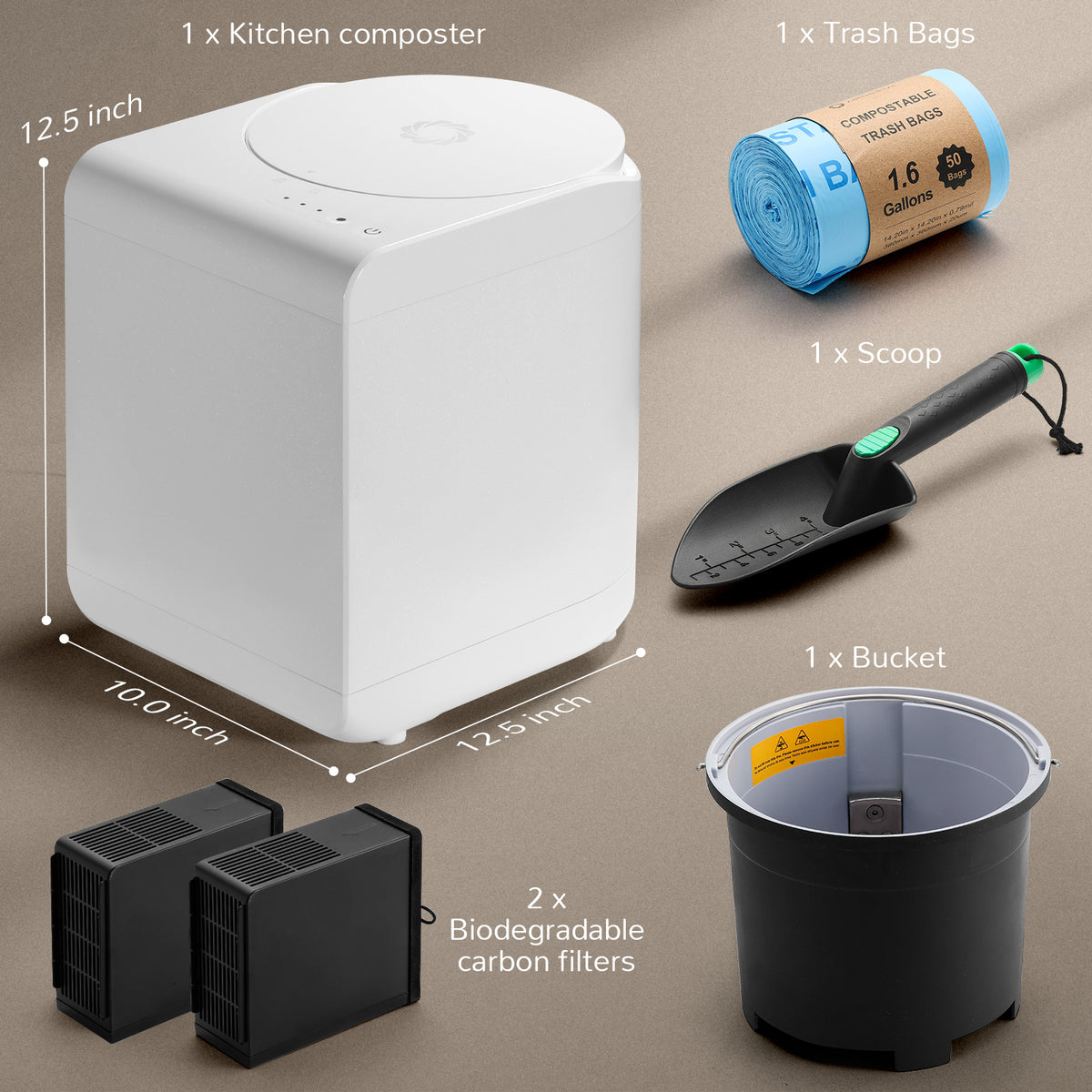 - Eliminate Garbage Odors: Instead of putting food scraps in the trash, dry them in a food composter to prevent the garbage smell from taking over your home. The odor-reducing biodegradable carbon filters help prevent smells in between composting cycles.